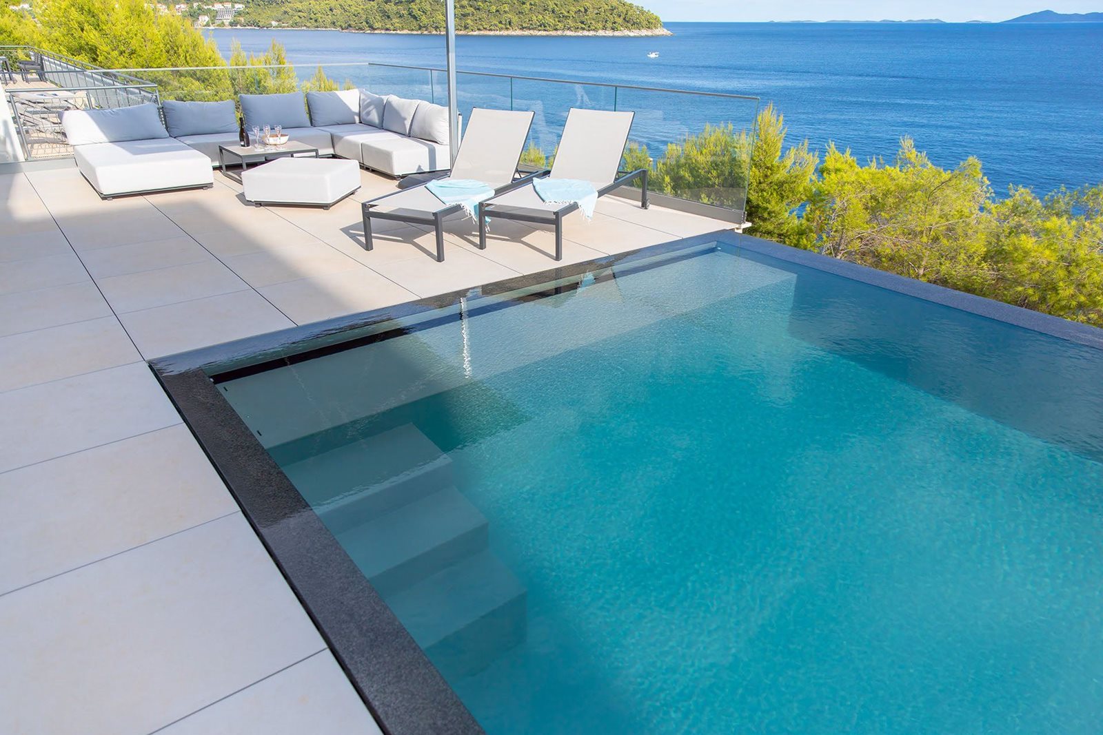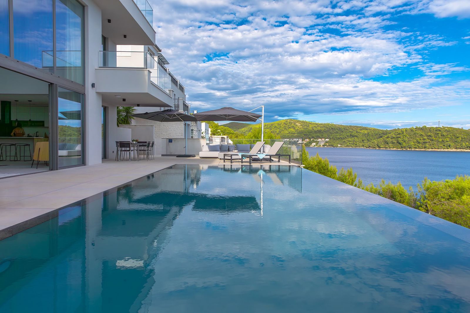 Vila na svahu s velkými prosklenými okny a nekonečným výhledem na moře je architektonickým skvostem, který se stal druhým domovem pro rodinu majitelů. Přáli si místo, kde budou moci společně s rodinou a přáteli trávit volné chvíle, dovolenou a cítit se pohodlně jako doma. Atmosféru výjimečnosti a luxusu završuje bazén NIVEKO, který se stal přirozeným středobodem celé vily.